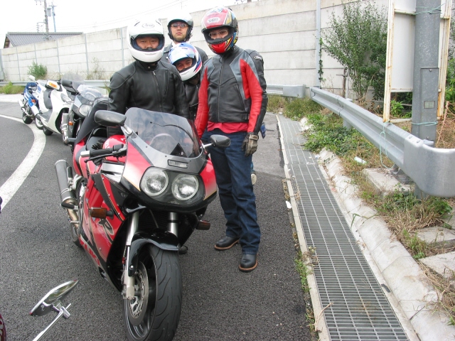 岡崎ICにて 2 後方に面白い方2名発見! 高橋さんと古賀さん 高橋さんの水冷でR